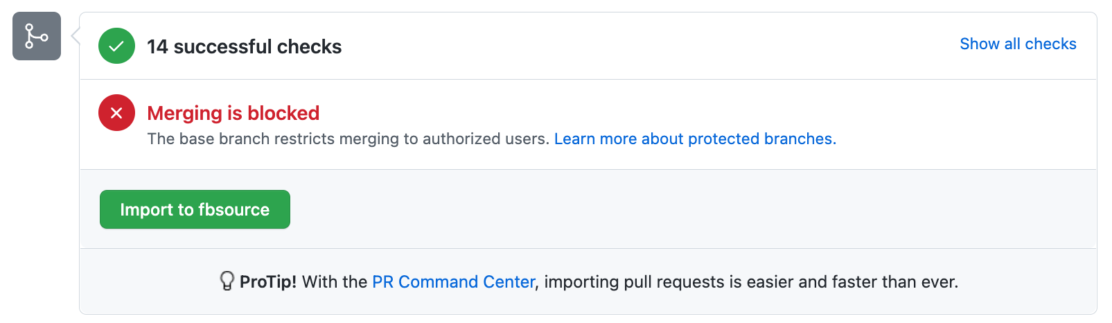 • Blocked on FB: The PR has been imported, but the changes have not yet been applied.